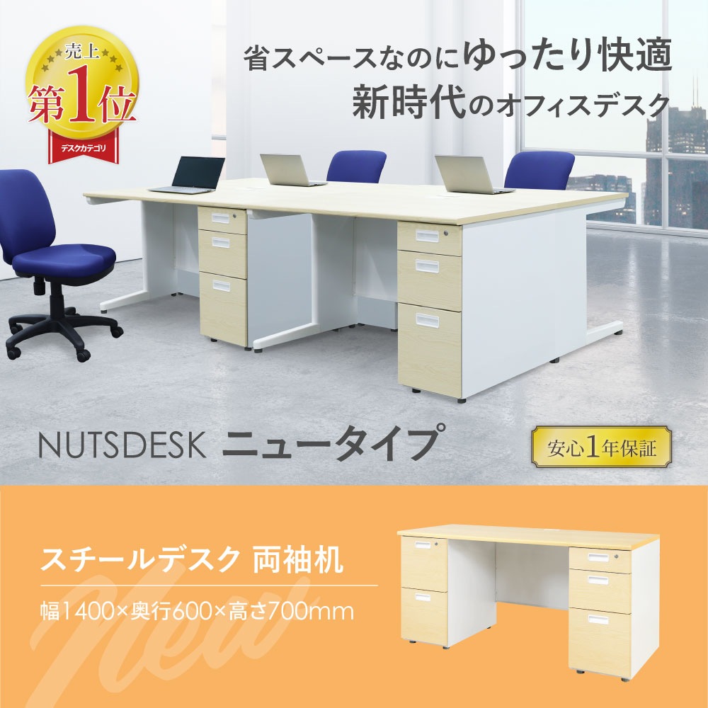 | 商品名 | NUTS(ナッツ)デスク ホワイト×木目 両袖机 スリム 幅1400mm 倉庫受取限定 |