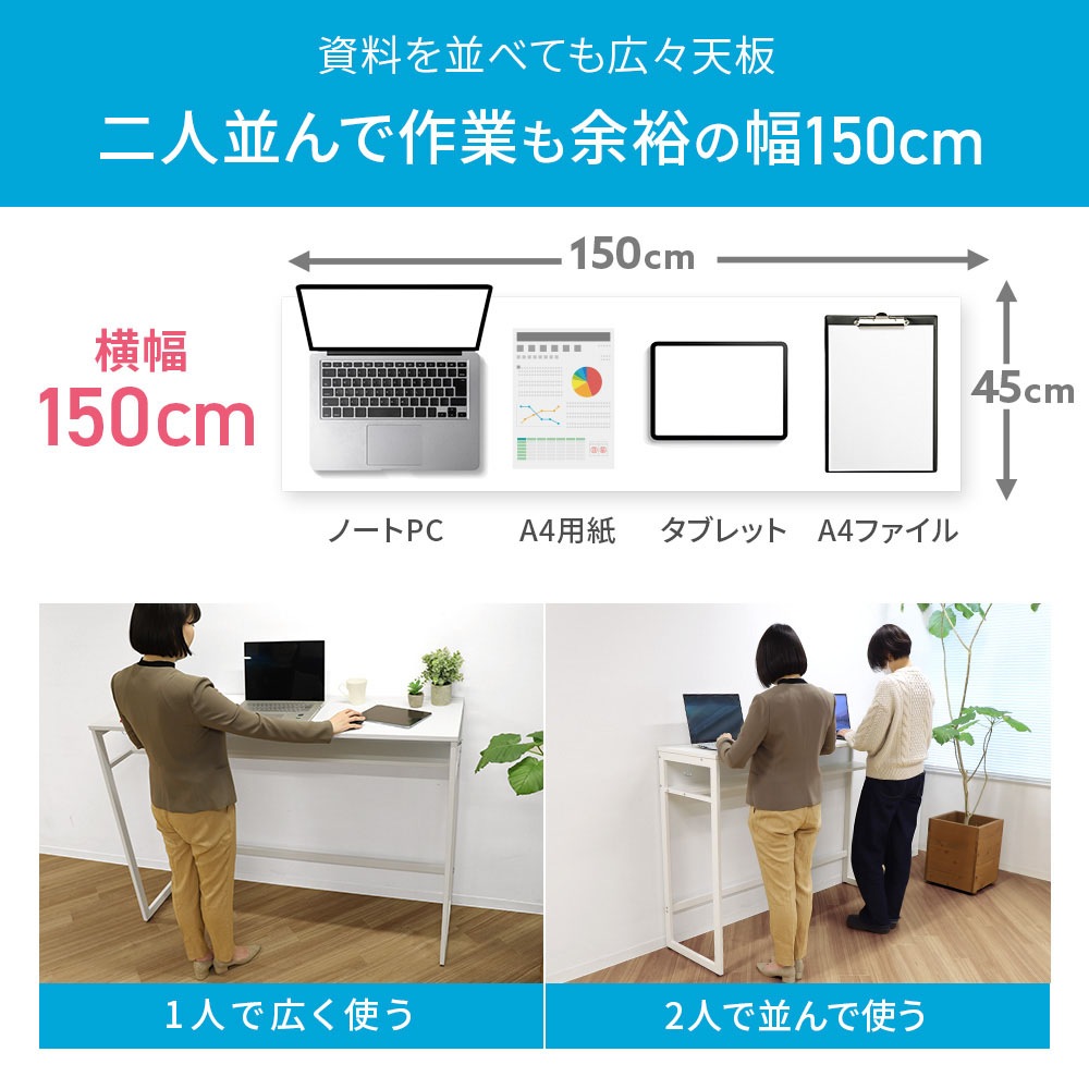 | ワークデスク ハイテーブル スタンディングテーブル スタンドテーブル PCデスク ワークテーブル 作業台 事務机 平机 つくえ カウンター シンプル シンプル モダン ナチュラル 白 木目調 ブラウン ウォールナット 幅150cm 奥行45cm 高さ105cm 棚板 2口コンセント コンセント USB USBポート USBハブ 荷物置き 荷物掛け フック 腰痛対策 腰痛 姿勢 会社 オフィス 事務所 学校 教育施設 塾 スクール 病院 介護施設 福祉施設 施設 公民館 カフェ 飲食店 打ち合わせ 打合せ フリーアドレス 在宅勤務 自宅勤務 テレワーク リモートワーク 勉強 学習 仕事 rffhd-1545 | |